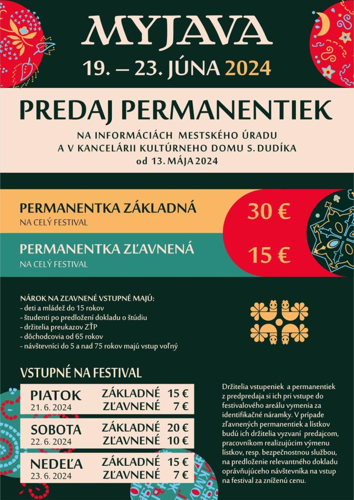 To samozrejme nie je všetko. Ak chcete mať lepšiu predstavu o kompletnom programe festivalu, sledujte festivalovú stránku www.mffmyjava.sk, kde bude postupne zverejnené všetko podstatné, čo o 64. ročníku Medzinárodného folklórneho festivalu MYJAVA 2024 potrebujete vedieť.