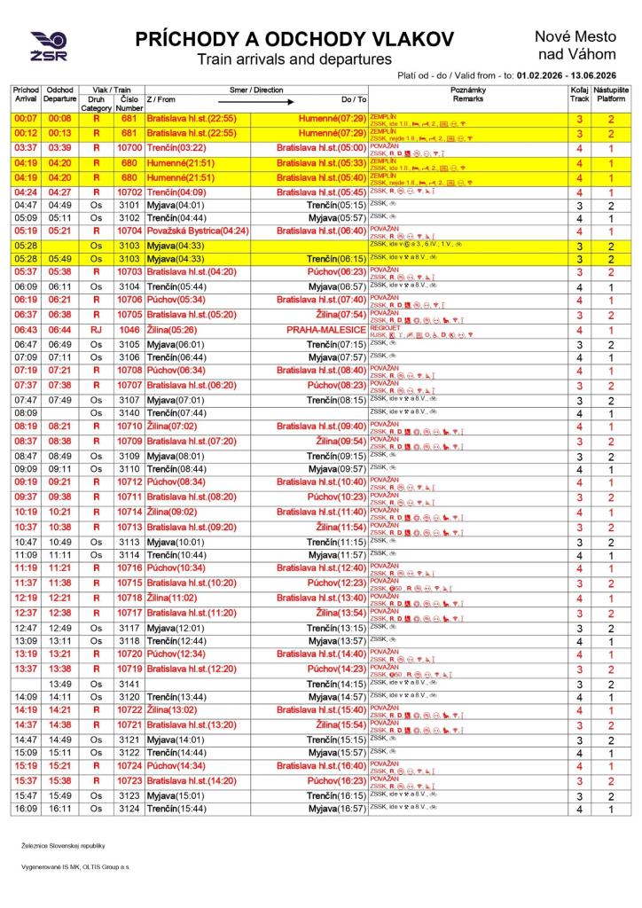 Zmeny grafikonu železničnej dopravy od 1. 2. 2026 Typ: PDF dokument, Veľkosť: 610.88 kB
