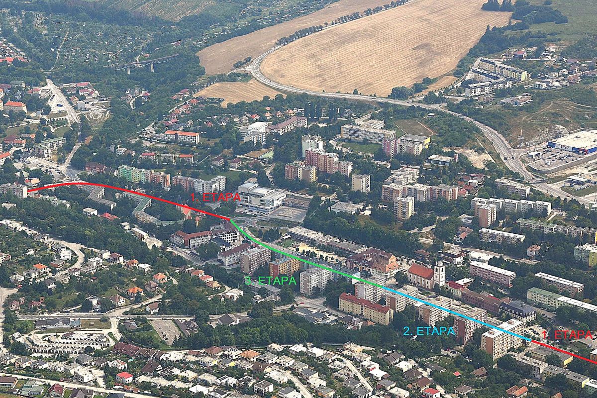 Prvá etapa sa týka územia od križovatky Ul. 1. mája s Hurbanovou a Staromyjavskou ulicou po okružnú križovatku pri mestskom úrade a od križovatky Námestia M. R. Štefánika s Hurbanovou ulicou, teda od Vránovho mostu, po začiatok obchodnej zóny (priechod pre chodcov pri Hoteli Štefánik). Druhá etapa zahŕňa časť Námestia M. R. Štefánika od bývalej Myjavanky po križovatku Námestia M. R. Štefánika s Moravskou ulicou a napokon tretia pokrýva časť námestia od križovatky s Moravskou ulicou po okružnú križovatku pri mestskom úrade. Dotknuté lokality a možné obchádzkové trasy v rámci prvej etapy sú zaznačené v priloženej mapke. Červenou farbou sú vyznačené stavebné úseky, žltou obchádzky.