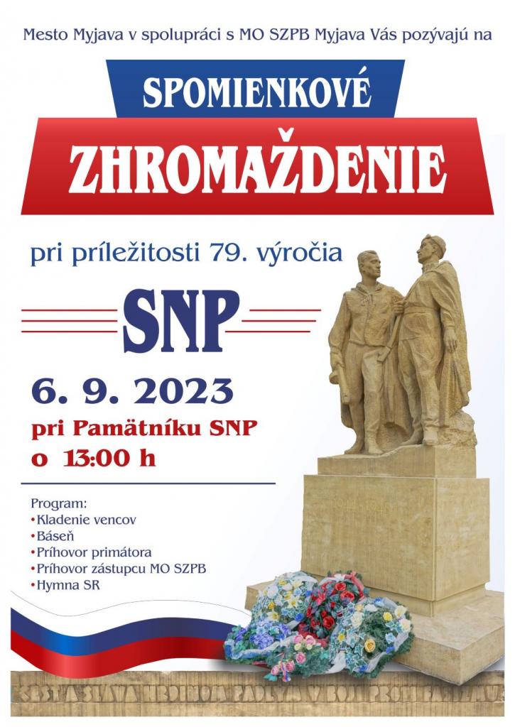 Program spomienky sa pri Pamätníku osloboditeľov začne o 13.00 h pietnym aktom kladenia vencov. Nasledovať budú recitál, príhovor primátora Myjavy, príhovor zástupcu Miestnej organizácie Zväzu protifašistických bojovníkov a hymna Slovenskej republiky.