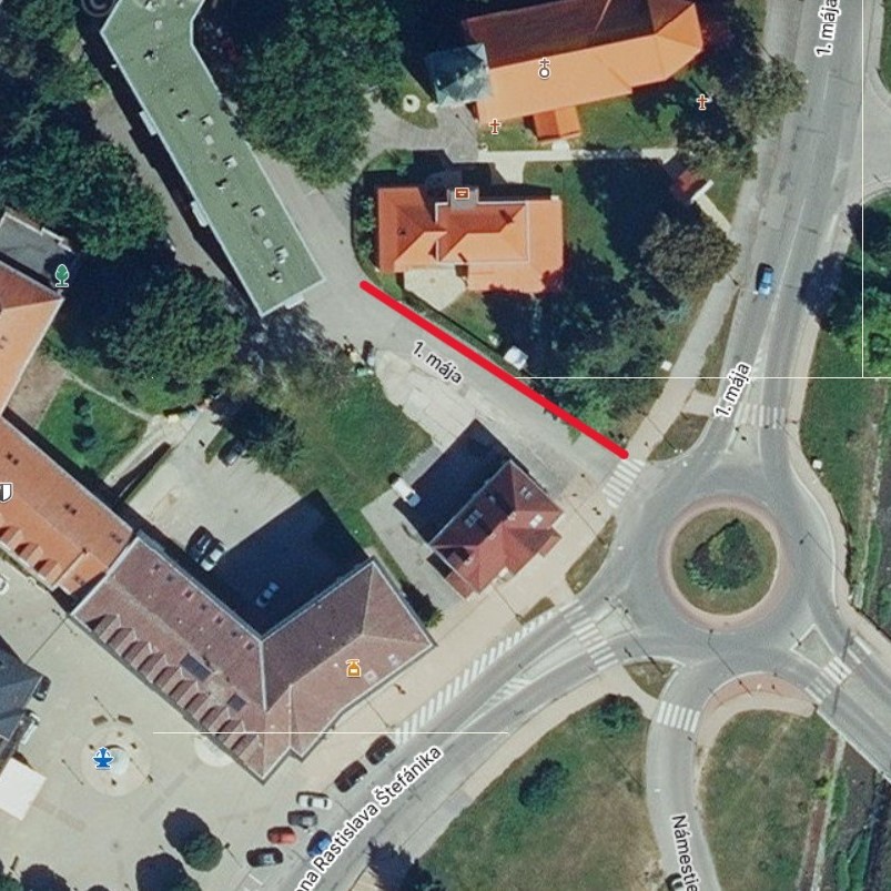 Keďže v tejto časti začali búracie práce zásadne obmedzujúce pohyb chodcov či premávku vozidiel, chceli by sme touto cestou požiadať všetkých, aby neparkovali svoje autá na ceste vedúcej od okružnej križovatky k parkovisku mestského úradu, kostolu či bytovkám (viď priložená mapka). Odstavené vozidlá tu blokujú premávku, komplikujú vývoz odpadu, prípadne znemožňujú vjazd a výjazd vozidiel záchranných zložiek.
