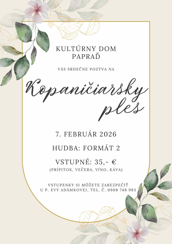 Kultúrny dom Papraď vás srdečne pozýva na 31. ročník Kopaničiarskeho plesu, ktorý sa bude konať v sobotu 7. februára.