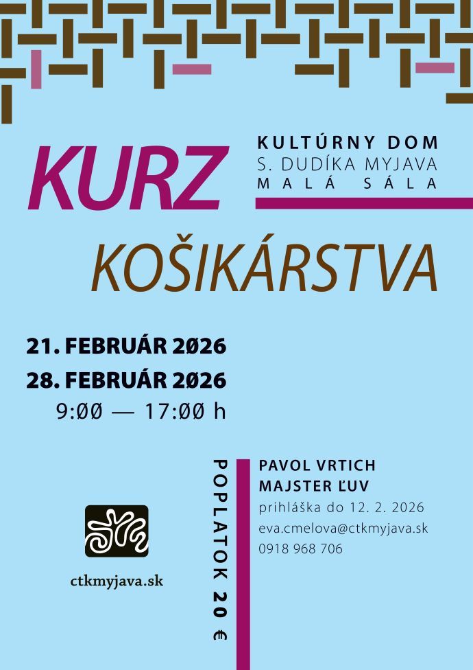 V prípade záujmu o kurzy sa hláste v Centre tradičnej kultúry, Partizánska 290/17, 907 01 Myjava, telefonicky 034/621 3252, 0918 968 706 alebo e-mailom na adresu: eva.cmelova@ctkmyjava.sk.