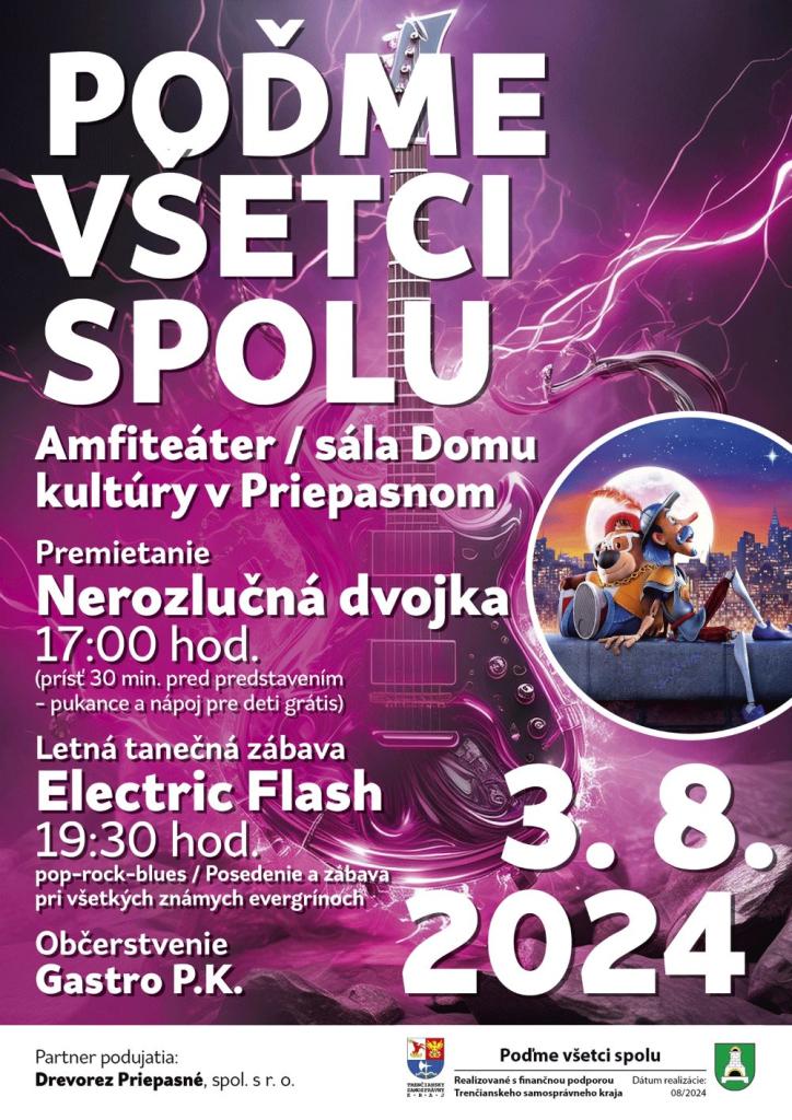 Jeho súčasťou bude premietanie animovaného filmu Nerozlučná dvojka, ku ktorému dostanú deti pukance a nápoj grátis a po ňom bude o 19.30 h nasledovať tanečná zábava s kapelou Electric Flash. Tá hrá rock, pop a blues a bude vás celý večer zabávať známymi evergreenmi. O občerstvenie sa počas podujatia postará Gastro P.K. z Myjavy.