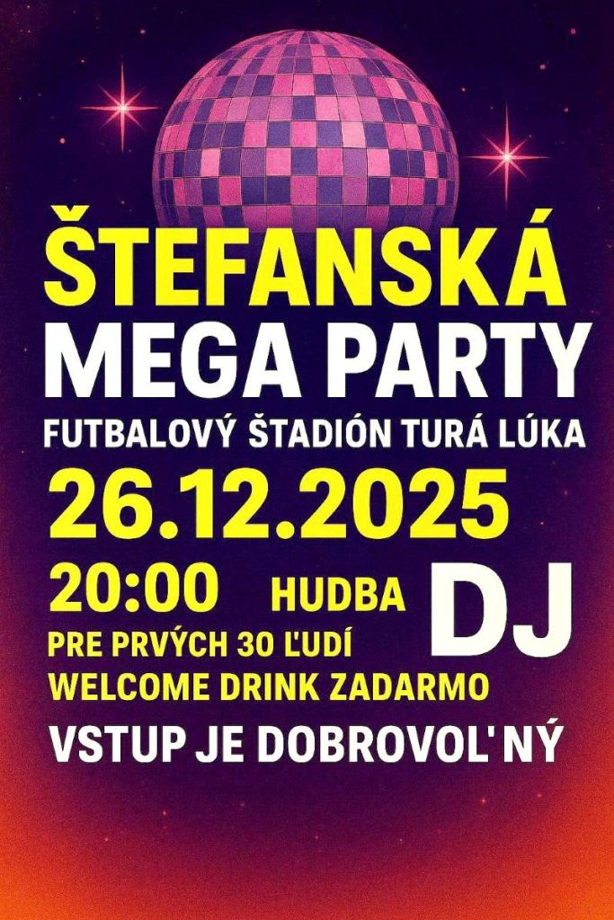 Prvých 30 návštevníkov párty sa môže tešiť na uvítací drink zadarmo. Pripravená bude vianočná tombola a občerstvenie. Vstupné je dobrovoľné a svoj stôl si môžete rezervovať na tel. čísle 0915 711 341 alebo priamo v klubovni turolúckeho štadióna u pani Bednárovej.