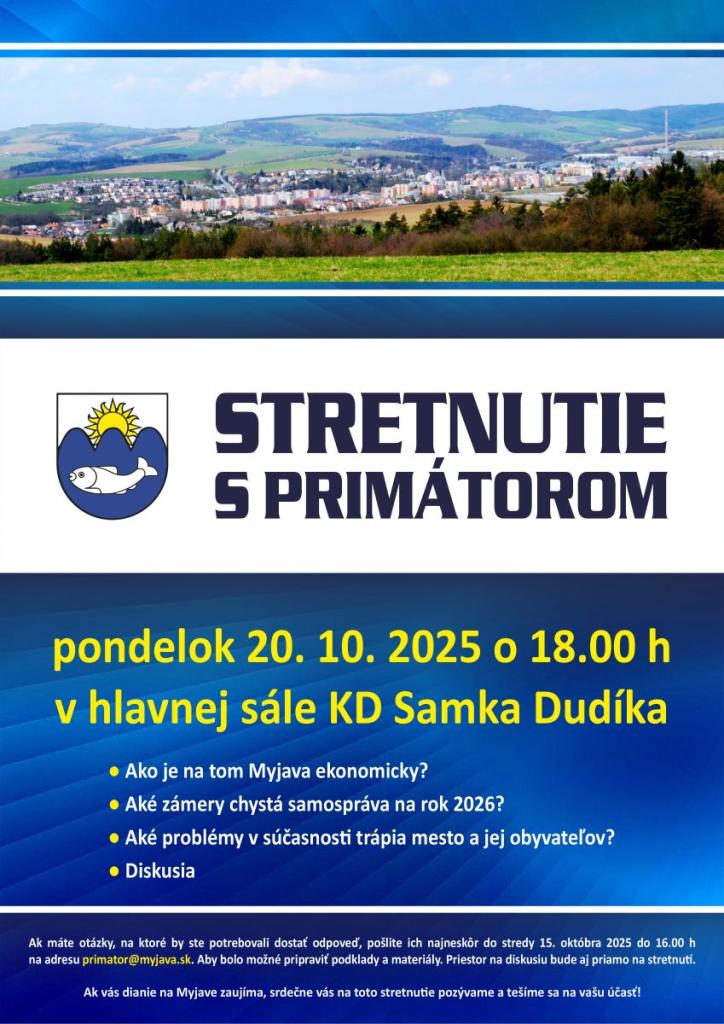 Pri tejto príležitosti by sme vás chceli vyzvať, ak máte nejakú otázku, na ktorú by ste od primátora radi počuli odpoveď, pošlite ju vopred na adresu primator@myjava.sk. A to najneskôr do stredy 15. októbra 2025, do 16.00 h. Aby bolo v prípade vážnejších a komplikovanejších tém možné pripraviť potrebné podklady pre odpoveď. Inak bude priestor na diskusiu aj priamo v sále.