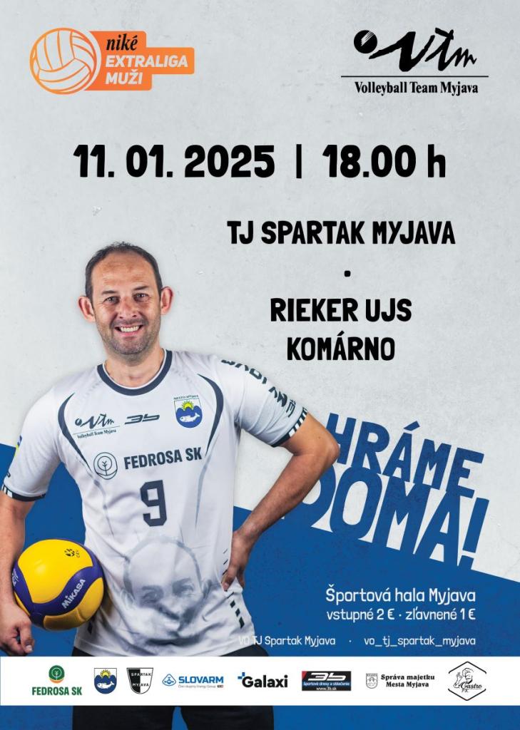 Volejbalový oddiel TJ Spartak Myjava vás srdečne pozýva na zápas Niké Extraligy mužov, v ktorom sa domáci Spartak stretne s tímom Rieker UJS Komárno.