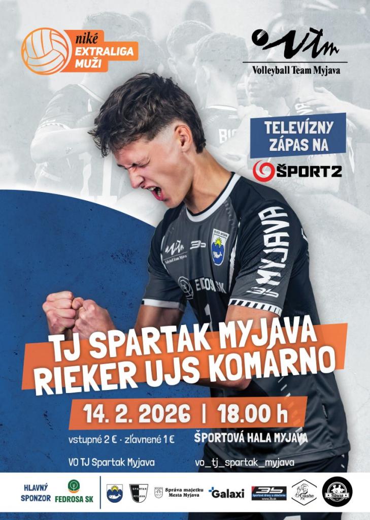 A to v sobotu 14. februára 2026 o 18.00 h pred televíznymi kamerami TV JOJ Šport 2. Vstupné je 2,- €/1,- €. Príďte povzbudiť našich hráčov, ako sa patrí!